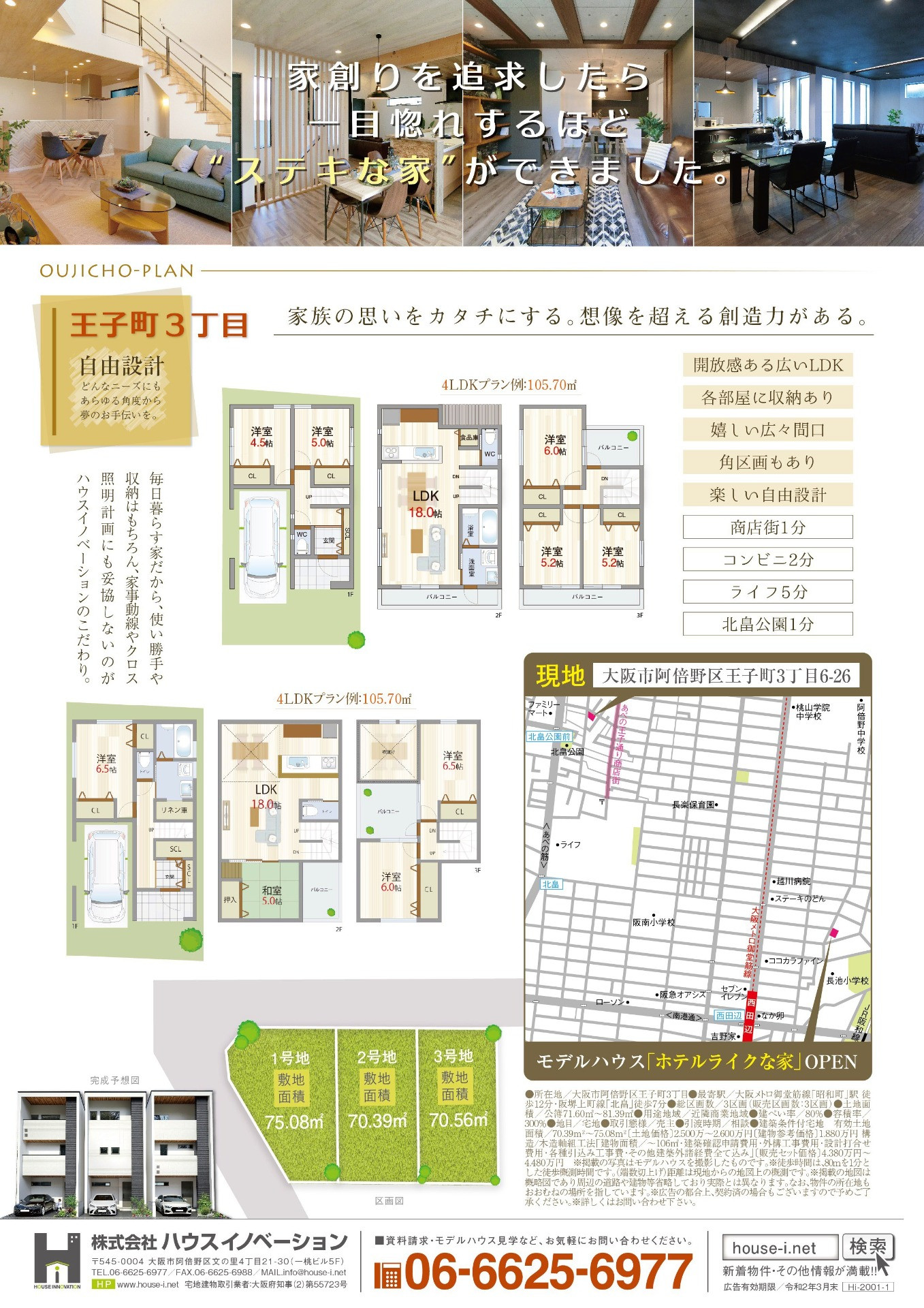 大阪市の阿倍野区にて株式会社ハウスイノベーションの新規分譲地☆広告登場☆ 2020/01/14 大阪市阿倍野区王子町にて新規物件登場☆ 【PREMIER王子町】 家族の思いをカタチにする。 【PREMIER王子町】広告新登場☆ ●大阪市阿倍野区王子町3丁目● ■角区画あり■間口広々■自由設計■日当たり良好 ☆新規分譲開始☆ 現地近くにモデルハウスをご準備しております。 お気軽にお問い合わせ下さいませ☆ 想像を超える創造力がある。 毎日暮らす家だから、使い勝手や収納はもちろん、 家事動線やクロス、照明計画にも妥協しないのがハウスイノベーションのこだわり。 ●阿倍野区エリアでは貴重な広い間口 ●楽しい自由設計 ●広々21坪以上