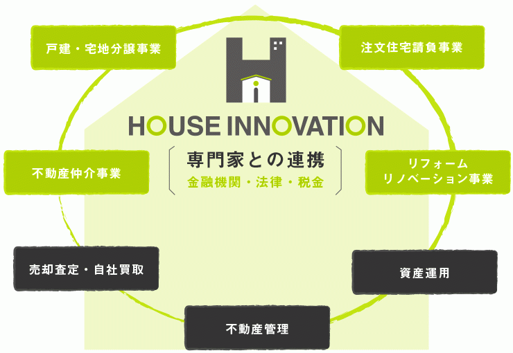 大阪市阿倍野区で注文住宅設計を手がける株式会社ハウスイノベーションは、新築一戸建てのマイホーム建築とマンション等の住宅のリノベーションに加え、不動産売却買取の仲介事業等、住まいの全てに対応するワンストップサービスを展開しております。社内には建築士はもちろん収納アドバイザーや宅地建物取引士の有資格者が在籍しており、外部に依頼することなくお客様のご依頼やご要望にスピーディーに対応することが可能です。